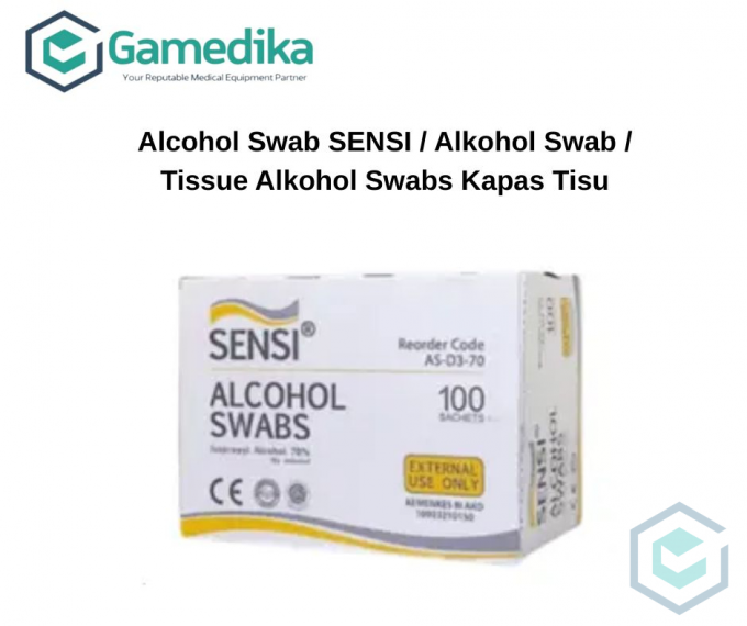 Harap konfirmasi terlebih dahulu Alcohol swabs merk SENSI adalah antiseptik dengan bahan dasar seperti tisu basah berukuran 3 x 3cm yang mengandung alkohol. Alcohol swab mengandung 70% isopropyl Alcohol. Alcohol swabs digunakan sebagai antisepsis sebelum melakukan tindakan seperti memberikan injeksi kepada pasien, pengambilan sampel darah, sebelum pemasangan infus, dan lain-lain. Agar permukaan yang akan dilakukan injeksi bersih dan terbebas dari kuman atau bakteri. - 70% Isopropyl Alkohol - Untuk membersihkan dan sterilisasi permukaan kulit sebelum dan sesudah penyutikan - Sebagai antiseptik permukaan alat- alat. - Hanya untuk penggunaan eksternal ( bagian luar tubuh/permukaan kulit). - Jauhkan dari anak-anak. KEMENKES RI AKD 10903210150