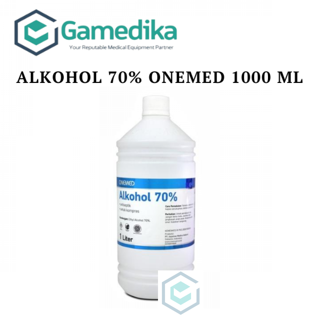 Harap konfirmasi terlebih dahulu "ALKOHOL 70% ONEMED 1000 ML -kadar ethyl alcohol> 70% -Solvent deonized Water -Antiseptik tertua yang memiliki daya bunuh kuman seketika -Kualitas food grade, kandungan pengotor rendah, mutu terjamin -Aman digunakan, bahkan untuk bayi -Kemasan botol plastik yang tebal, dan tidak transparan, mengurangi cahaya yang masuk menghindari penguapan alkohol sehingga konsentrasi alkohol tetap stabil, efektifitas tidak berkurang Kemasan : botol isi 1 liter