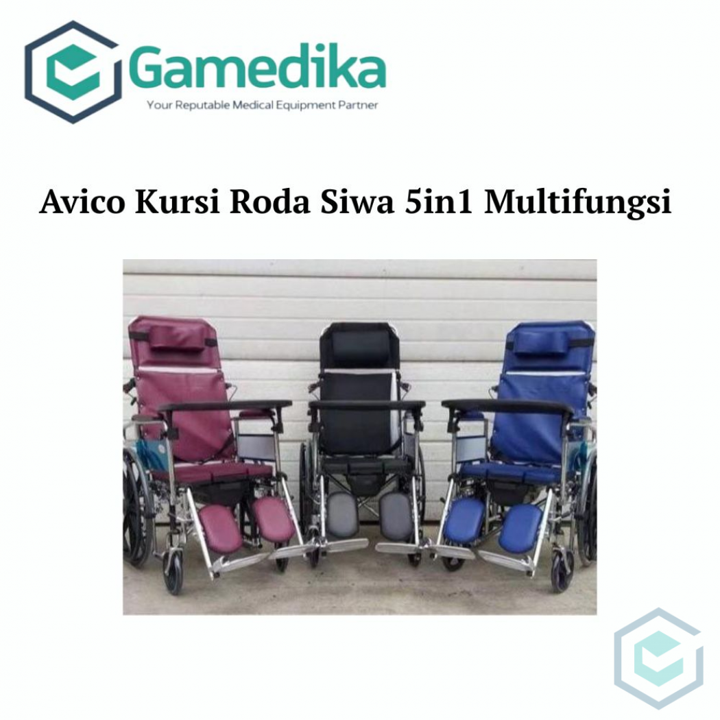 Harap konfirmasi terlebih dahulu. Kursi Roda 5in1 Avico Siwa Kursi Roda Multifungsi AVICO Kursi Roda Siwa 5 in 1 Velg Racing. Kursi roda ini multifungsi, bisa digunakan untuk BAB, tiduran, dan pijakan kaki yang dapat diatur. Dudukan tangan dapat diangkat, memudahkan pasien turun dari kursi. Dilengkapi papan meja makanan dan tempat BAB. Fitur Produk Bahan chrome/besi Sebagai kursi roda mewah Tempat tidur/rebahan Papan meja makanan Tempat BAB Bantal empuk Rem belakang Desain tuas sandaran bergigi Rem tangan Seat belt Pijakan kaki mudah diatur 2 roda kecil Spesifikasi Beban maksimum : 100 kg
