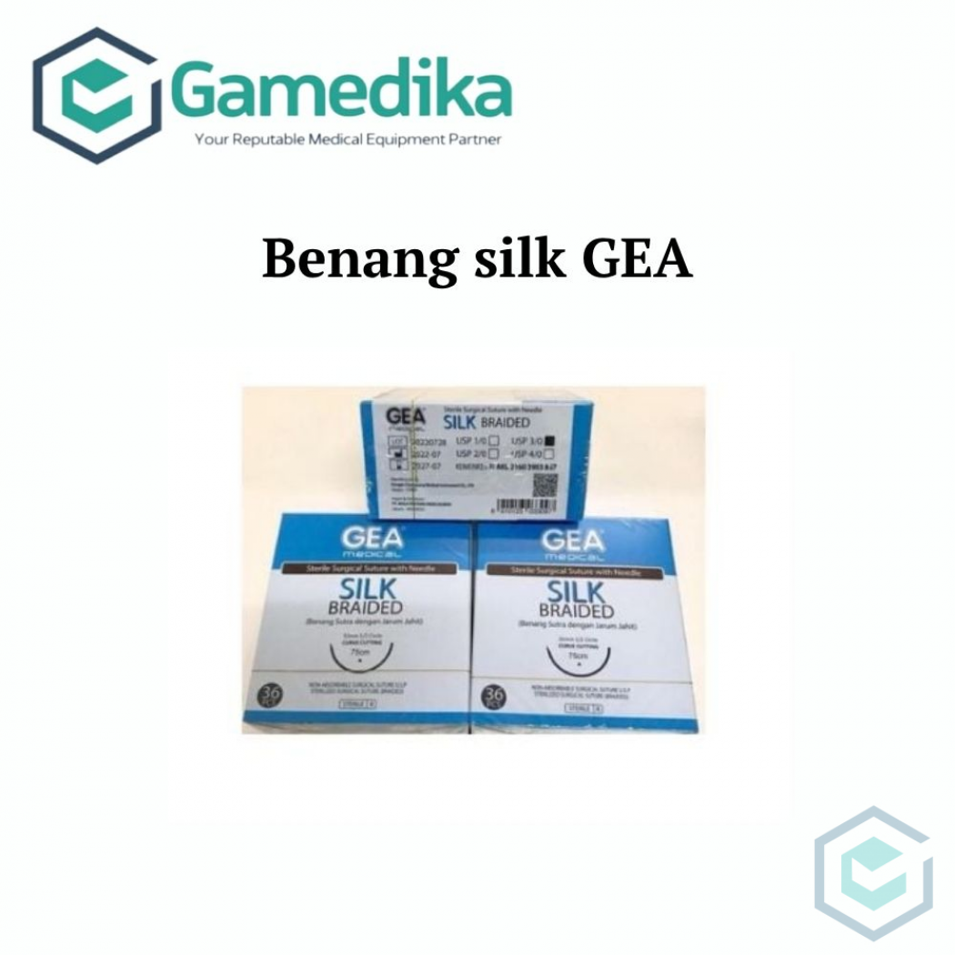 - Benang Jahit Silk GEA + Jarum GEA Benang sutra dengan jarum jahit 2/0