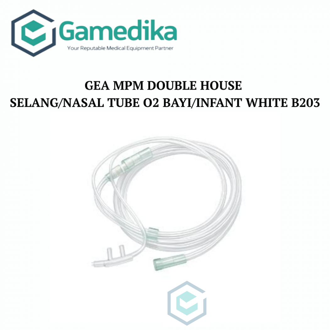 Harap konfirmasi terlebih dahulu, GEA MPM Double House Selang/Nasal Tube O2 Bayi/Infant White B203 GEA Nasal Oxygen Cannula Infant / Selang Oksigen Bayi Soft Tip Nasal Kanul oksigen adalah selang berbentuk kanul yang khusus digunakan untuk alat bantu pernafasan, menyalurkan oksigen yang berasal dari tabung oksigen.