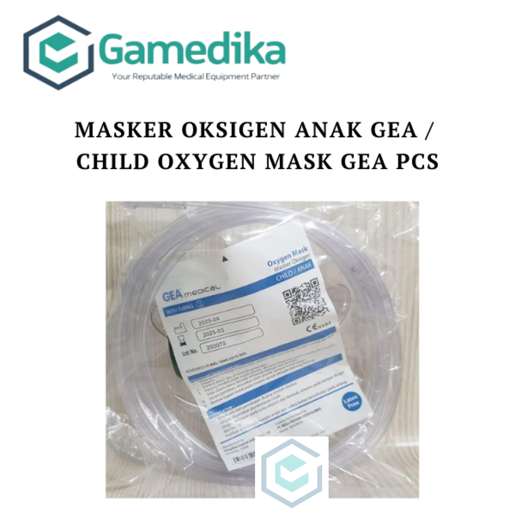 Harap konfirmasi terlebih dahulu "Masker Oksigen ANAK GEA / Child Oxygen Mask GEA PCS Masker Oksigen Anak GEA. Child Oxygen Mask. With Tubing Latex Free/Bebas Latex Merk : Gea Made of medical PVC With anti-crush 7ft.Tubing Good quality certificated by FDA, CE and ISO13485 Masker Oksigen adalah salah satu bagian dari alat bantu pernapasan yang berfungsi untuk menyalurkan oksigen dari tabung oksigen ke dalam paru – paru pasien melalui mulut dan hidung. Masker oksigen terbuat dari bahan pvc kualitas tinggi dan umumnya bening dan tidak berwarna. Khusus Anak/Child