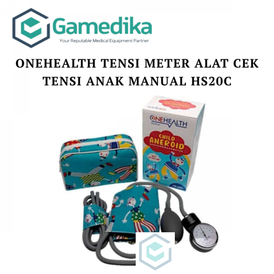 "HARAP KONFIRMASI TERLEBIH DAHULU. Onehealth HS-20C Aneroid Sphygmomanometer Child dengan desain karakter anak dapat digunakan untuk mengukur tekanan darah pada pasien bayi dan anak-anak. Tensimeter ini merupakan tensimeter manual yang menggunakan aneroid atau jarum sebagai media informasi hasil pengukuran. Spesfikasi Produk Jenis : Tensimeter Aneroid (bayi & anak) Manometer Gauge Size : 4.5 cm Bahan Manset : Katun dan velcro untuk perekat Rentang Pengukuran : 0-300 mmHg Ukuran Manset : 20-26 cm (anak), 12-14cm (bayi) Varian Warna : kartun Tas/Box Penyimpanan : Ada"" AKL 20501220424"
