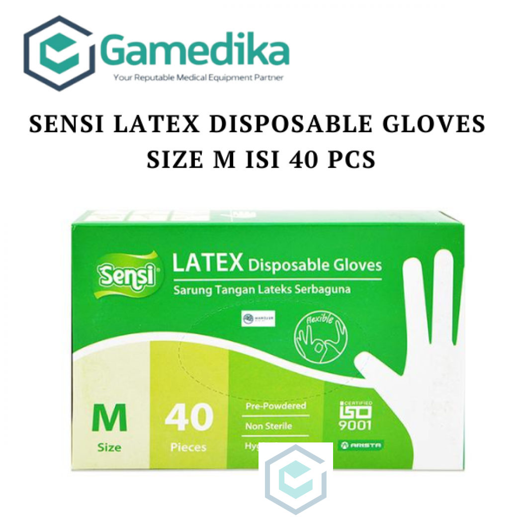 "Harap konfirmasi terlebih dahulu "Sensi Latex Disposable Gloves Size M Isi 40 PCS" Sensi Latex Disposable Gloves merupakan sarung tangan karet sekali pakai yang berfungsi melindungi tangan dari kotoran untuk menghindari penyebaran kuman, bakteri dan virus, resiko terkontaminasi serta penularan penyakit. Sensi Latex Disposable Gloves terbuat memiliki daya proteksi yang cukup baik, sangat fleksibel, elastis dan pas di tangan sehingga nyaman saat dipakai bekerja. Sensi Latex Disposable Gloves terbuat dari bahan lateks alami yang mungkin dapat menyebabkan reaksi alergi bagi sebagian orang. Oleh karena itu disarankan untuk mencuci tangan sebelum atau sesudah menggunakan sarung tangan ini. Cara Memakai : Ambil sarung tangan dari kotak dengan menyentuh bagian luar pergelangan sarung tangan dan masukkan tangan. Cara Melepaskan : Tarik bagian pergelangan sarung tangan tanpa menyentuh kulit sambil digulung dan di pegang oleh tangan sebelahnya. Kemudian masukkan jari ke dalam pergelangan sarung tangan kedua sambil menggulung keluar bersama sarung tangan pertama. Cara Penyimpanan : Simpanlah di tempat kering dan sejuk dalam wadah tertutup. Jauhkan dari sinar matahari, cahaya lampu, dan benda berbau. Kemasan : Dus Isi 40 Pcs (20 pasang) sarung tangan Size M "
