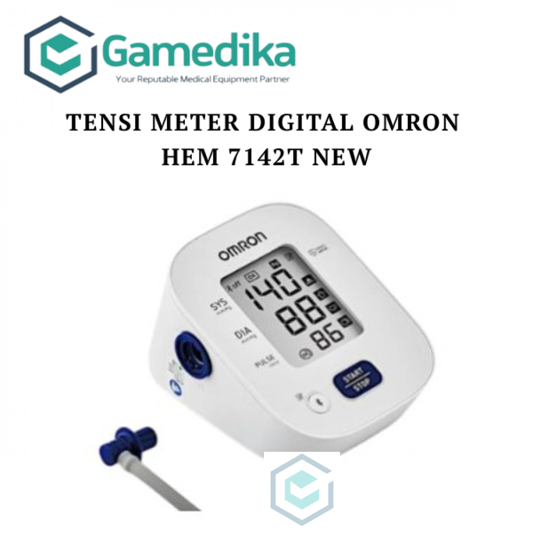 "HARAP KONFIRMASI TERLEBIH AHULU. AKL 20501220368 Fitur Omron HEM-7142T1 Untuk fiturnya Omron HEM-7142T1 memiliki teknologi Intellisese dari Jepang yang diterapkan disemua tensimeter digital Omron, hal ini akan memompa manset secara otomatis hingga mencapai tingkat yang ideal dalam setiap penggunaan. Teknonlogi ini memberikan keakuratan, kenyamanan dan kemudahan dalam penggunaan. Untuk fitur lainnya adalah layar yang besar dan jelas, menampilkan waktu dan tanggal, angka nilai sistolik, diastolik dan pulse. Terdapat indikator yang penting untuk pengukuran tekanan darah seperti indikator Hipertensi jika nilai sistolik diatas 135 mmHg dan diastolik diatas 85 mmHg. terdapat juga indikator pemasangan manset yang benar. Dilengkapi dengan fitur bluetooth pada alat tensimeter menjadikan tensimeter ini mempermudah pengguna dalam memantau hasil pengukuran. Anda bisa terhubung kapan saja dan dimana saja dengan Omron HEM-7142T1, dengan tambahan aplikasi Omron Connect yang bisa di unduh di App Store dan Play Store, hasil pengukuran dapat dilihat dan disimpan pada smartphone dengan mudah. Omron HEM-7142T1 menggunakan manset reguler dengan ukuran lingkar lengan 22-32 cm. Selain itu, tensimeter ini juga didukung dengan penggunaan baterai AA sebanyak empat buah, sehingga mudah untuk digunakan dimana saja tanpa harus menggunakan colokan listrik."