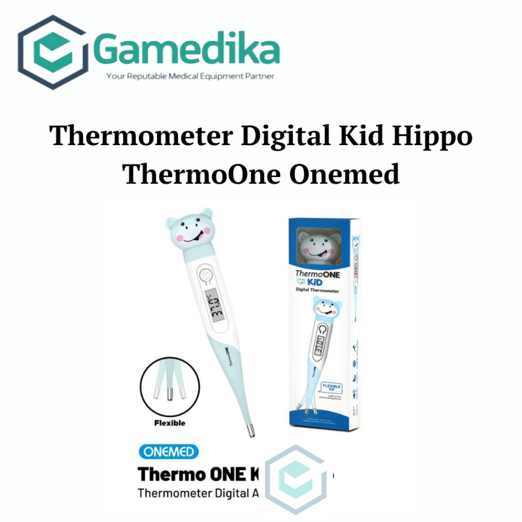 Harap konfirmasi terlebih dahulu. Thermometer Digital Flexi Kid ThermoOne Onemed Thermometer Digital (bebas mercury) merk OneMed EKONOMIS, yang mudah digunakan, dan mempunyai akurasi tinggi, Layar LCD lebar, mudah dibaca, waktu pengukuran 60 detik. Ada alarm pada akhir pengukuran suhu dan memori pengukuran terakhir. Mati otomatis sesaat setelah tidak digunakan. - Display 32-42 C - Akurasi 0,1 C - Waktu pengukuran 60 detik - Bisa dipakai pada oral, axila, dan rectal - Otomatis mati setelah 10 menit tidak digunakan - Batery 1.5V button battery (LR/SR 41) tahan sampai 15 bln pemakaian - Memory : hasil pengukuran terakhir - Dilengkapi dengan tutup protector - Kemasan 12 pcs/ box One Thermometer for One Patient (mencegah cross infection) dipakai di rumah tangga, klinik, praktek dokter, atau rumah sakit. GO GREEN-ramah lingkungan, non mercury. Sebagai pengganti thermometer HG yang berbahaya dan merusak lingkungan. NOMOR IZIN EDAR: AKL 20901220198